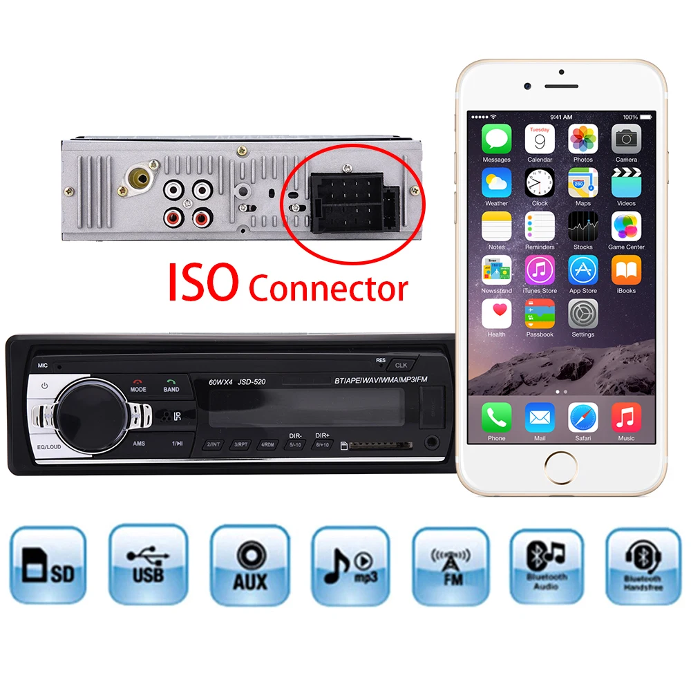 Iso Connector Car Radio Stereo Player Bluetooth Phone Aux In Mp3 Fm Usb 1din Remote Control 12v Car Audio Jsd520 Fm Stereo Radio Car Radio Stereo Player Car Audiomp3 Player Car Usb Aliexpress